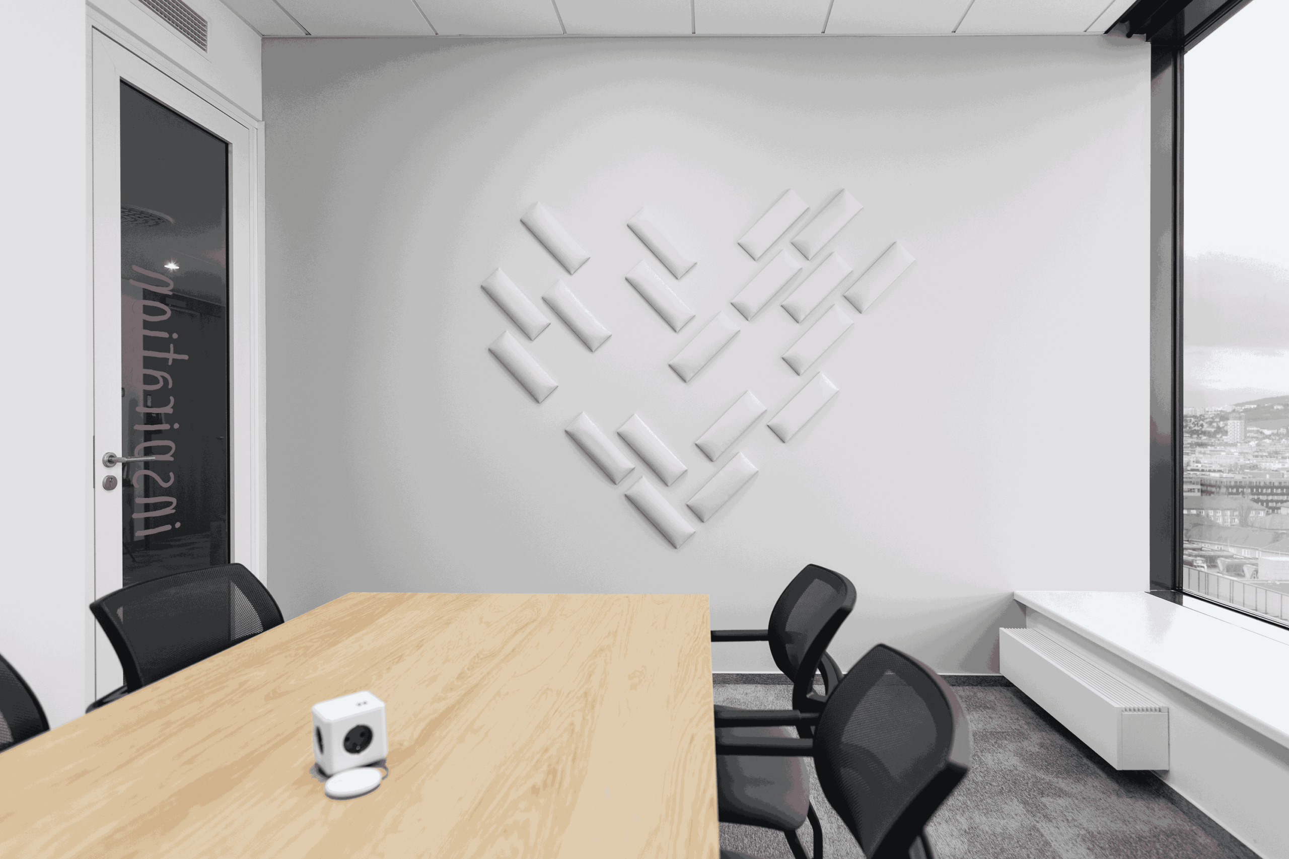 Dôležité bolo zabezpečiť akustickú pohodu, dostatok úložných riešení a vytvoriť reprezentatívne prostredie s prirodzeným svetlom a výhľadom na mesto.