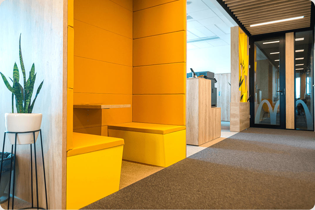 McDonald’s potreboval zjednotiť vizuálnu identitu v kancelárskych priestoroch tak, aby pôsobili modernejšie, prémiovo a zároveň prirodzene reprezentovali značku. Cieľom bolo vytvoriť prostredie, ktoré podporí každodenné fungovanie tímov, zlepší orientáciu v priestore a spraví z kancelárie miesto, ktoré pôsobí profesionálne aj pre návštevy a partnerov.